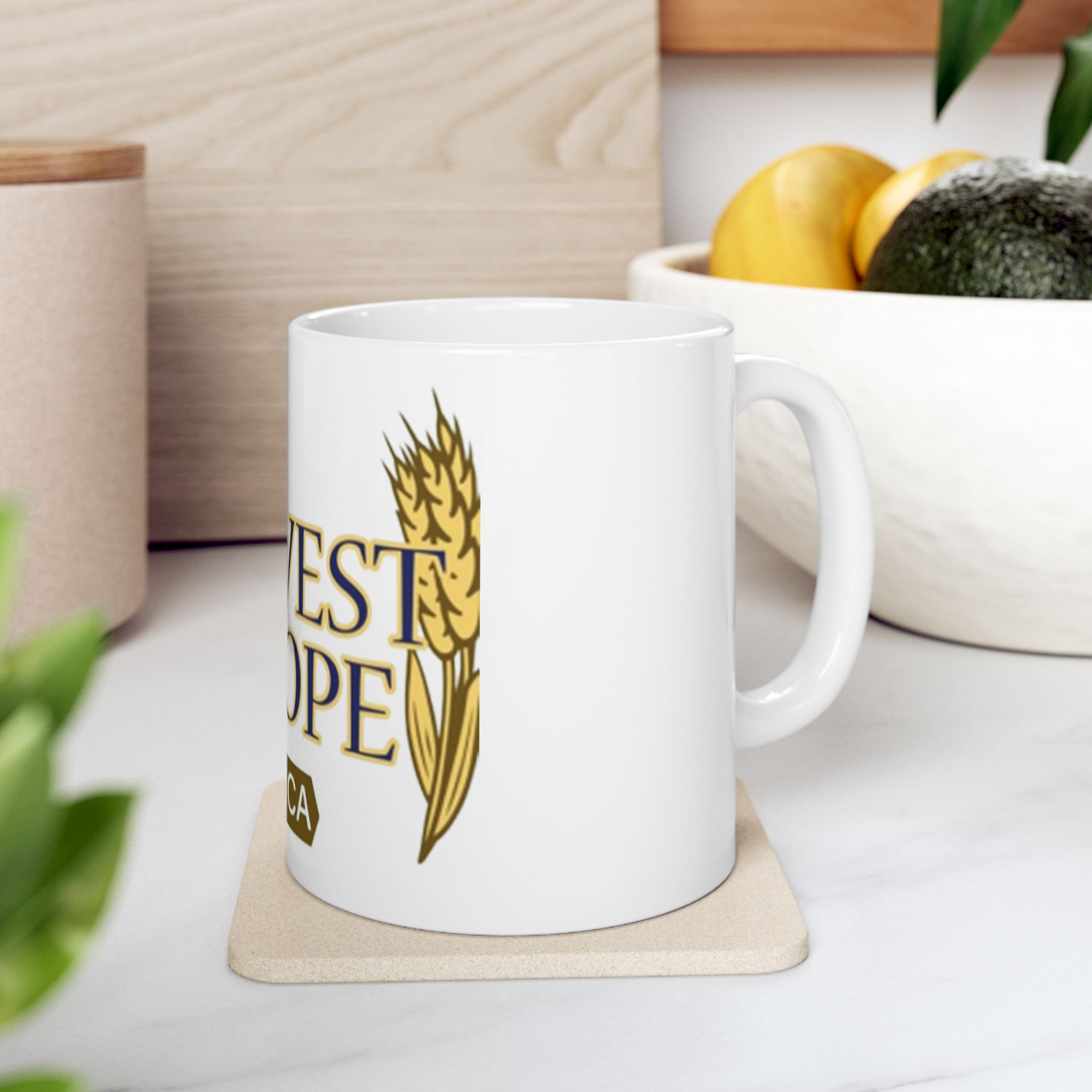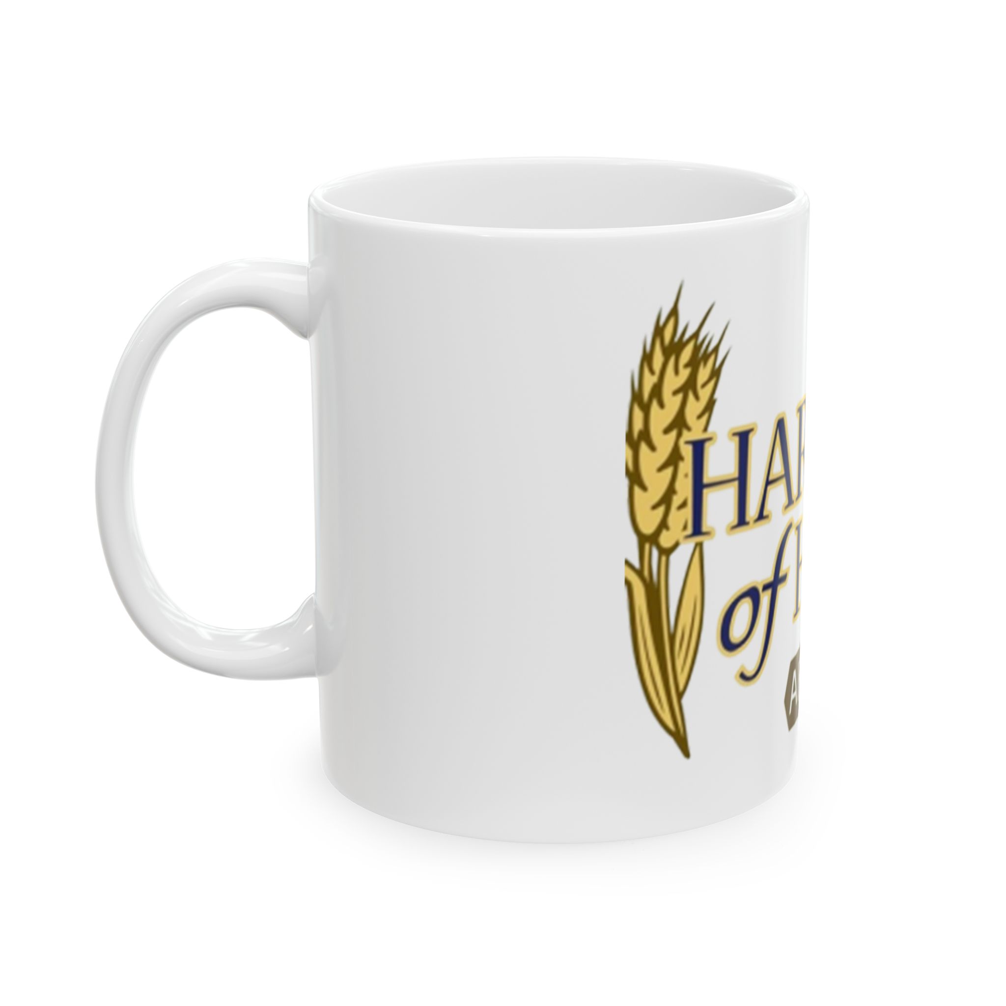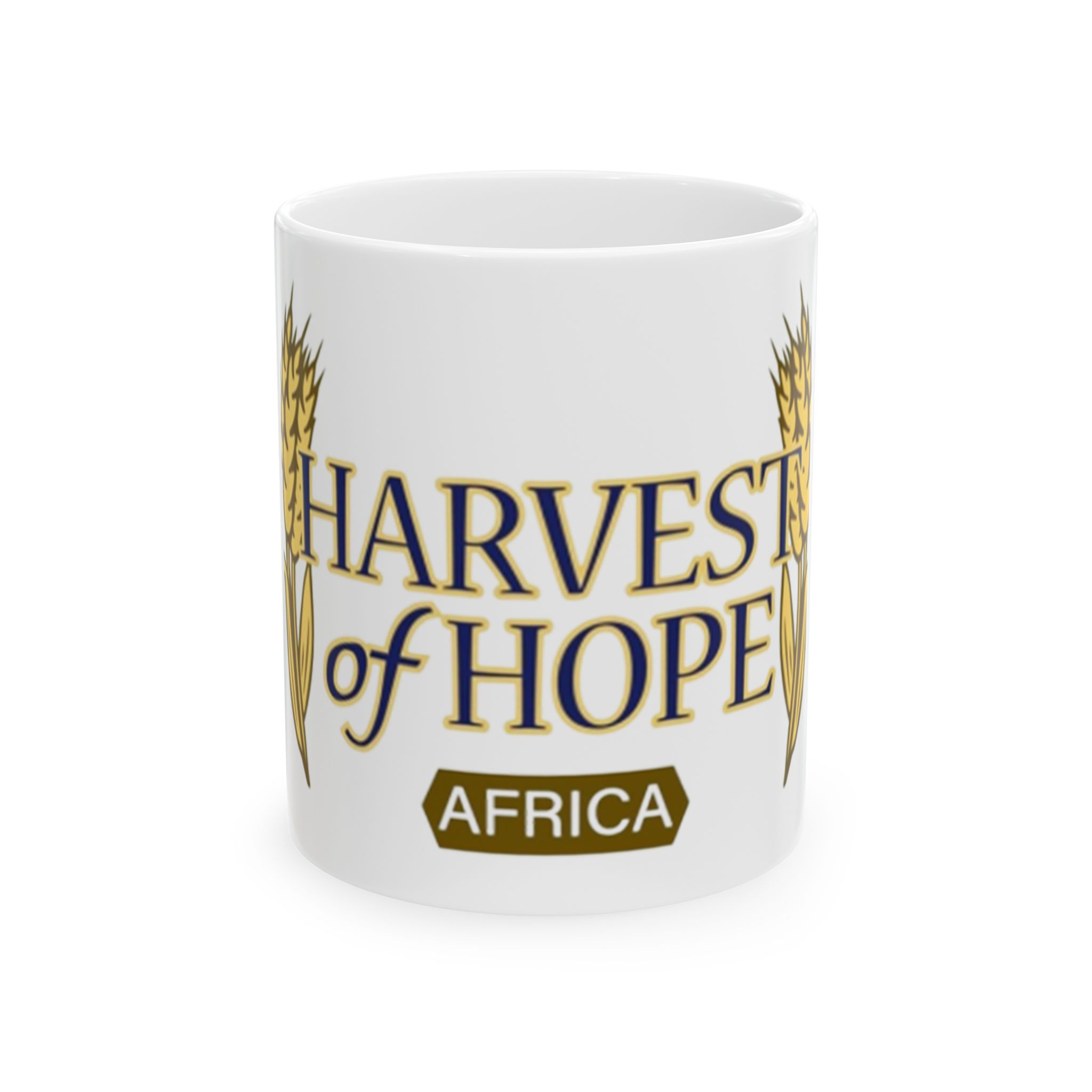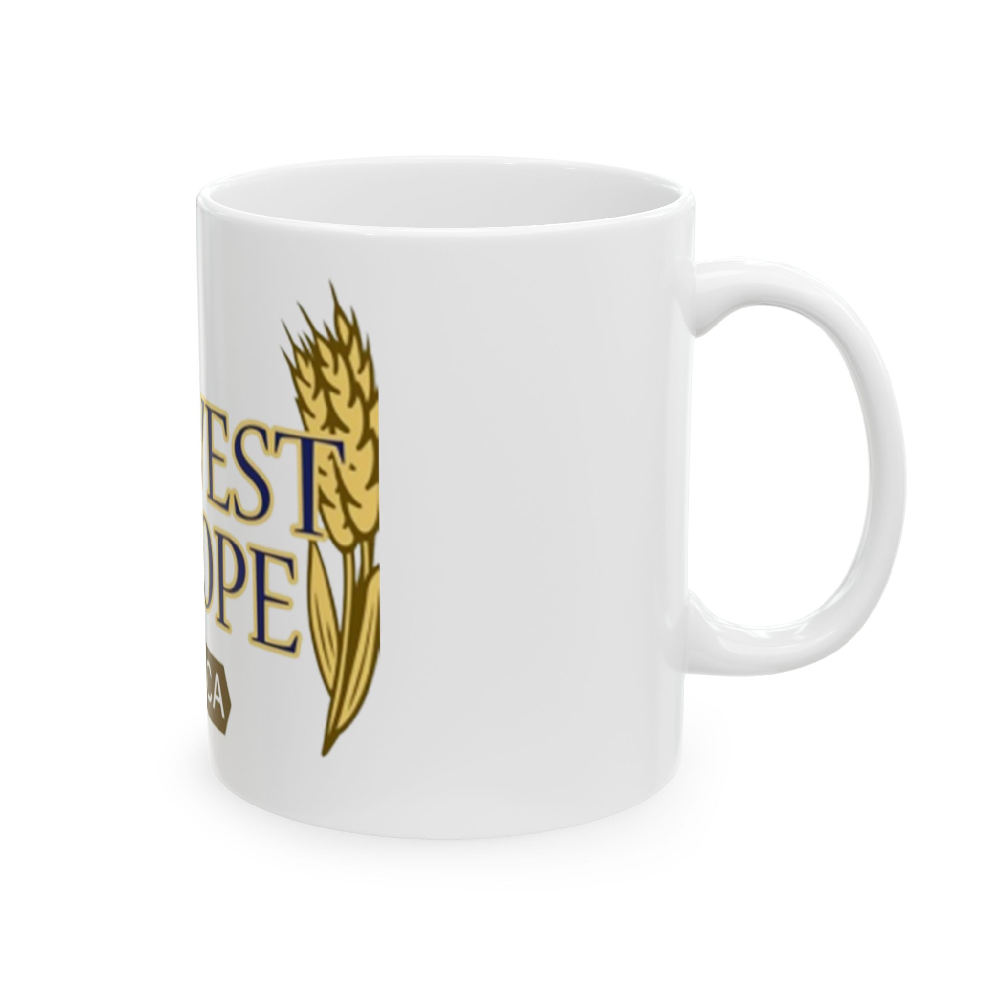 Warm and grounded, this glossy ceramic mug carries a simple message of harvest and hope —a quiet reminder with each sip. Rich gold lettering and wheat accents wrap the white surface, giving an organic, sunlit look that feels both sacred and everyday. It sits comfortably in your hands with a C-handle and shines on a kitchen shelf or office desk, inviting slow moments of gratitude or a morning pause before the day begins. Sized for a single strong coffee or a generous tea, it blends into routines and special gatherings alike, bringing an uplifting, rooted presence to breakfasts, community meals, or reflection times.
